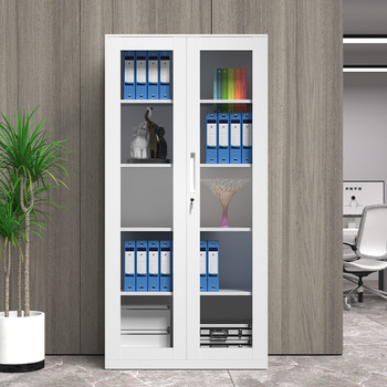 अनुकूलित 2-ग्लास दरवाजा आधुनिक धातु कार्यालय भंडारण कैबिनेट स्टील फाइलिंग अलमारियाँ 4 समायोज्य ऊंचाई शेल्फ घर कार्यालय रसोई